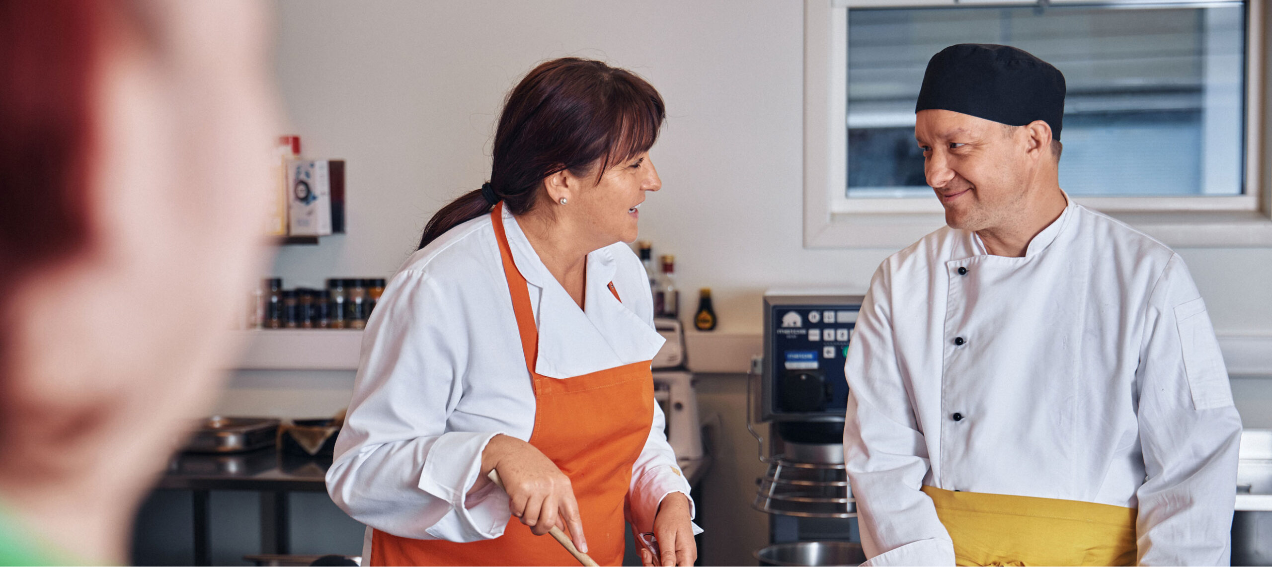 Du kan jobba med alt frå enkle matrettar til meir avansert matlaging med profesjonelt utstyr. Her lagar og serverer du lunsj, og lærer om hygiene, samarbeid, kvalitet og vedlikehald av utstyr og lokale.